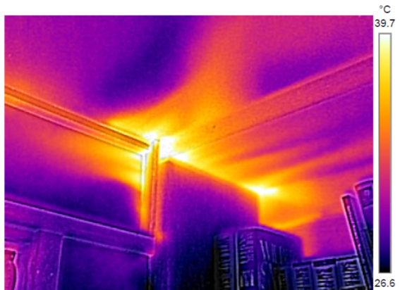 Air leaking at built-in bookcase and wall joint |